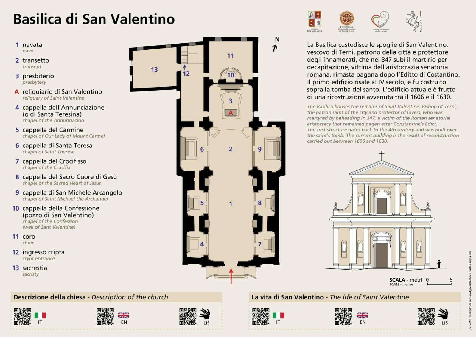 Il progetto si pone l’obiettivo di valorizzare l’eccellenza del patrimonio artistico ed ecclesiastico della basilica di San Valentino, diffondendo allo stesso tempo la cultura dell’inclusione, rivolgendosi a tutti i cittadini e i pellegrini, in particolare a coloro che, a causa di disabilità sensoriali, hanno difficoltà a cogliere la bellezza e la forma dell’edificio. Un vero e proprio percorso pluri-sensoriale e multimediale attraverso la storia di San Valentino e l’arte del suo luogo di culto: un’esperienza visiva, tattile e uditiva.